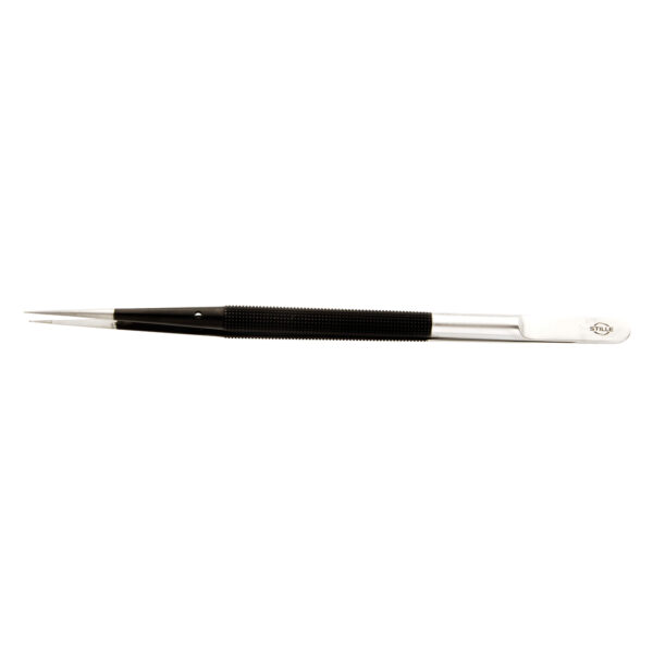 Well balanced and ergonomic micro forceps of ultra high quality. With tying platform and straight jaws. 0.4 mm tips.